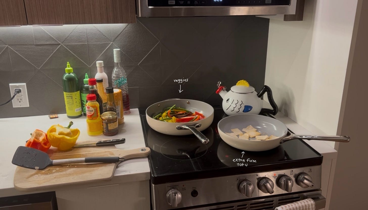 Documenting solo coffee walks to the east river in the budding spring sunshine. Recording myself cooking baked tofu stir fry just because it was something new to try. Actually noticing the attention to detail put into the landscaping of the local park garden.
